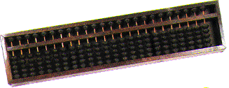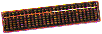昭和2年(1765)の播州そろばんで、25桁、天2、地5珠、底板は右開き 赤漆塗り、珠は梅、枠は樫で作られている。裏面には使用者中川小兵衛の名が ある。