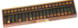 “さいころそろばん”とも呼ばれる盲人用点字式の20桁角珠そろばんで、 明治から大正にかけて筑波大学附属盲学校の前身である訓盲唖院で使われた。