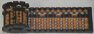 キャタピラのような形でロール状に巻き込むことができる、携帯に便利なそ ろばん。