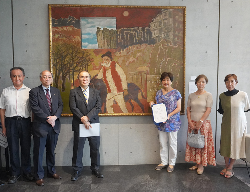 2023年7月18日(火)、絵画寄贈者への感謝状贈呈式が開催されました。 画壇の中心的存在で昭和の時代を代表する作家としてご活躍され、勲四等瑞宝章、紺綬褒章を受章された櫻田 精一氏の絵画(「クエンカの記録」)をご恵贈いただいたことに対し、絵…
