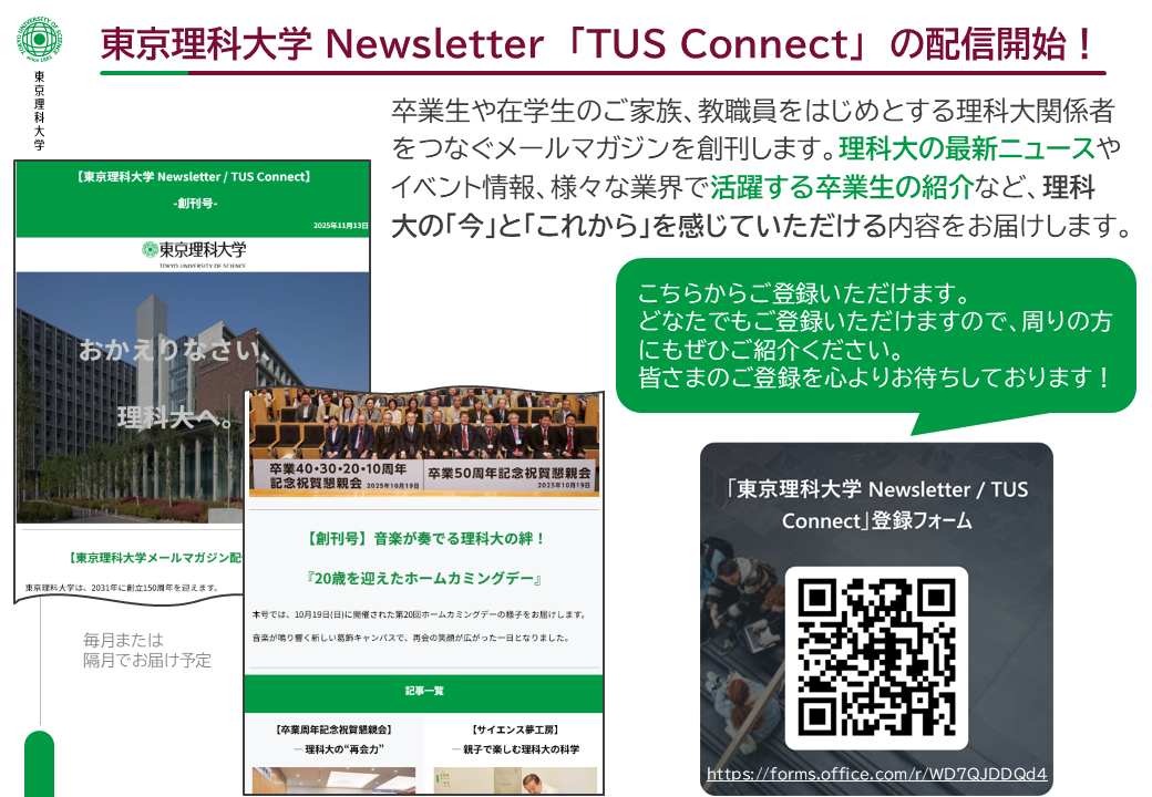東京理科大学 Newsletter 「TUS Connect」 ― 卒業生・保護者・教職員などの理科大関係者をつなぐメールマガジン ―