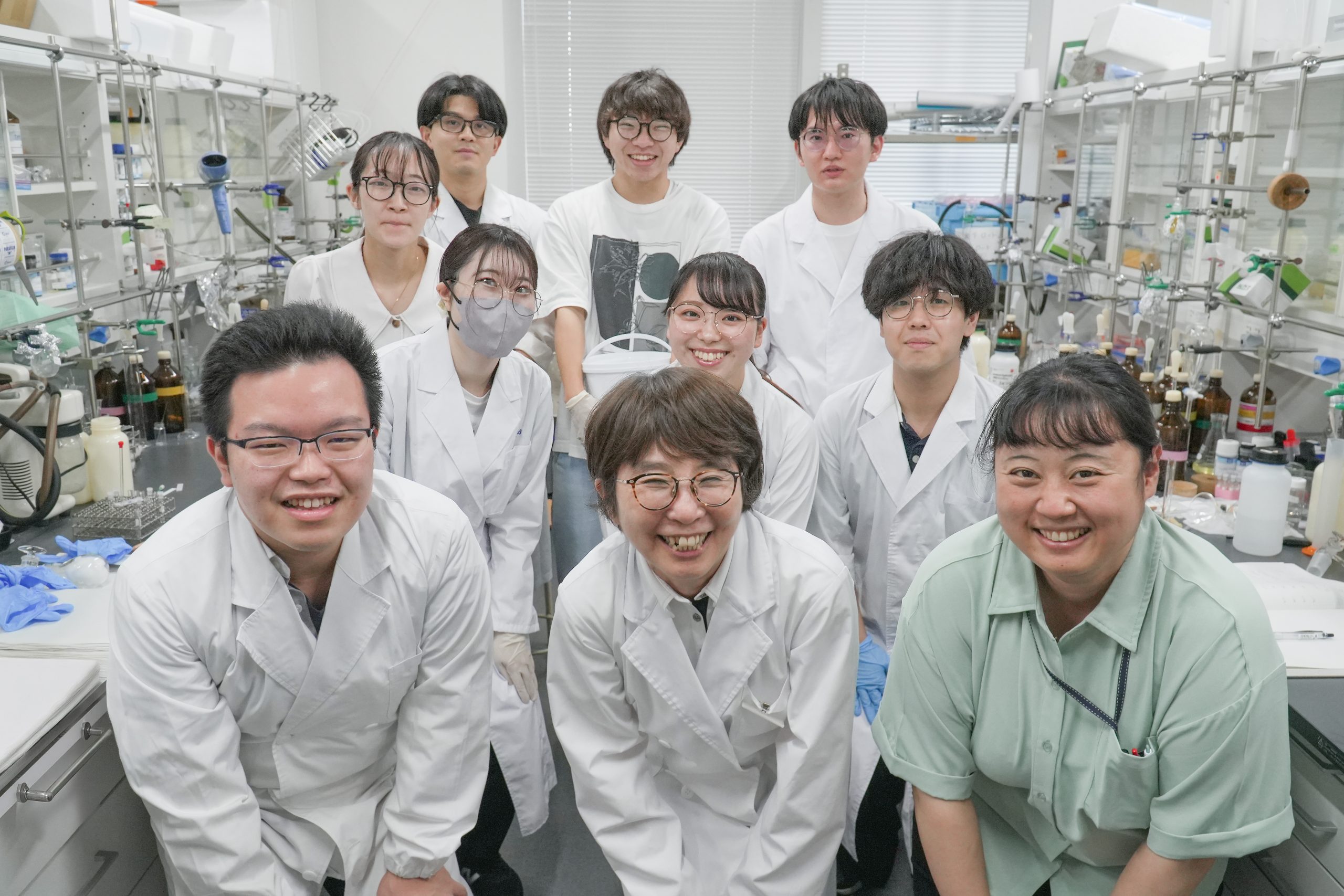 世の中で自分の思い通りになることってほとんどないじゃないですか。だけど、研究なら自分の思う通りになるわけですよ。「これとこれを混ぜたら何ができるだろう」と考えて実験をして、思うような結果が出ないことも多いですが、思ったとおりの結果が出たときは、「世界征服したときってこんな気持ちかな」と思うくらい感動する。それが創薬につながり人の命を救うことにつながっていくと思うと、それはもう何ごとにも代えがたい喜びですね。