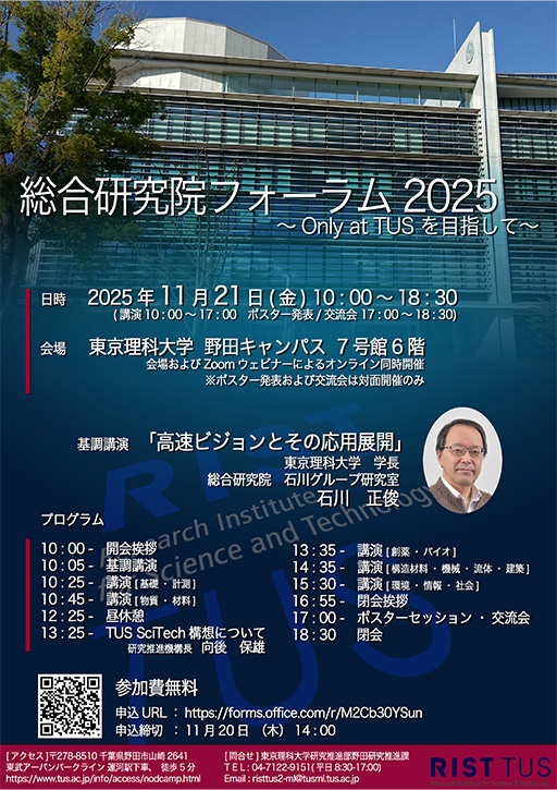 東京理科大学 総合研究院フォーラム2025を、下記のとおり開催します。